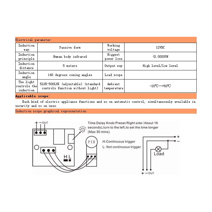 Détecteur mouvement pir infrarouge 12v YT.758 a encaster cellule photoélectrique jour nuit