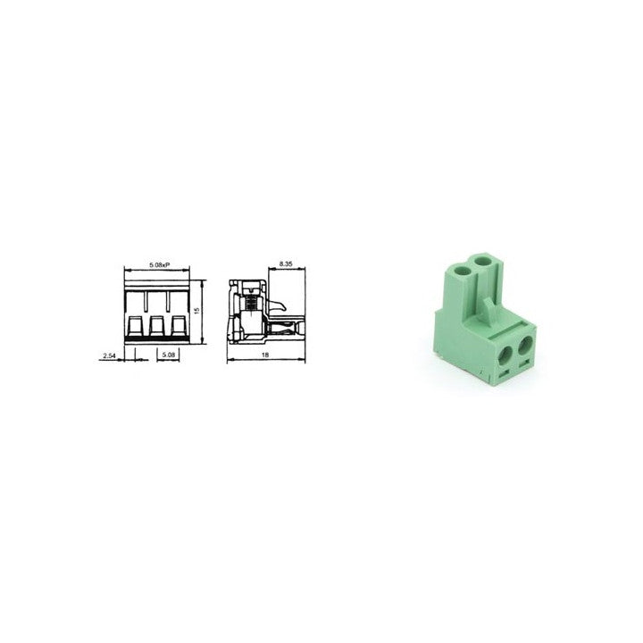 Spécificationsnombre de pôles: 2pas: 5.08mmpour câbles: 12AWGvaleurs: 300V / 10Acouleur: vert