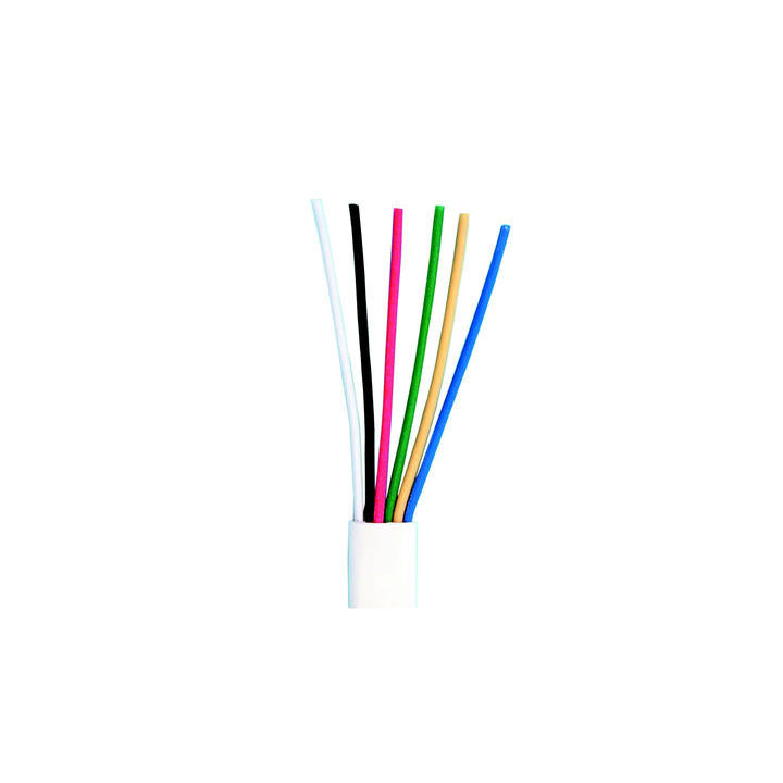 Câble téléphonique 6 fils (1m) Ce type de câble est souple de manière à  rendre l'utilisation facile et robuste à  la torsion pour limiter les risques de coupure. Les fils sont de couleurs diverses afin de faciliter le repérage. La gaine, de couleur blanche, offre un maximum de discrétion. Ces câbles sont spécialement étudiés pour l'installation de système d'alarme. téléphonie etc... Ces câble sont destinés par exemple au raccordement de centraux téléphoniques, téléphones, des périphériques d'alarme (détecteurs, etc.).
