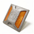 Panneau réfléchissant de la route, de la rue, de la chaussée ou du sol. C'est un petit réflecteur en forme carrée avec 100mm de côté et 20mm de hauteur. Il a deux réflecteurs orange opposés. Fait d'aluminium argenté durable. Idéal pour signaler ou délimiter des zones industrielles, des rues, des routes privées ou publiques, etc. Il a un pivot de 40mm sur le fond qui facilite la fixation, laissant une installation plus solide et difficile à demonter..