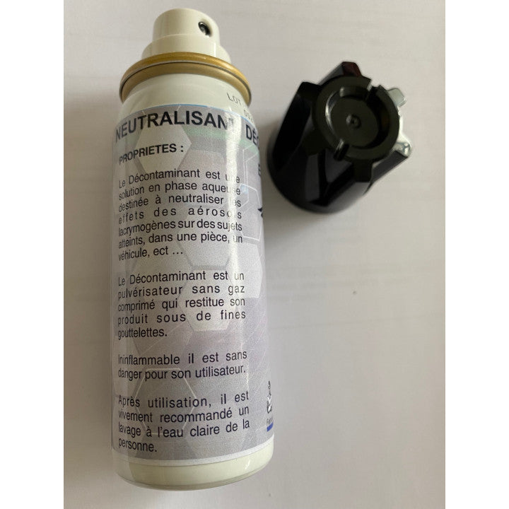 Spray decontaminant 50ml pour aerosol defense gaz cs gel agent neutraliseur securite defense