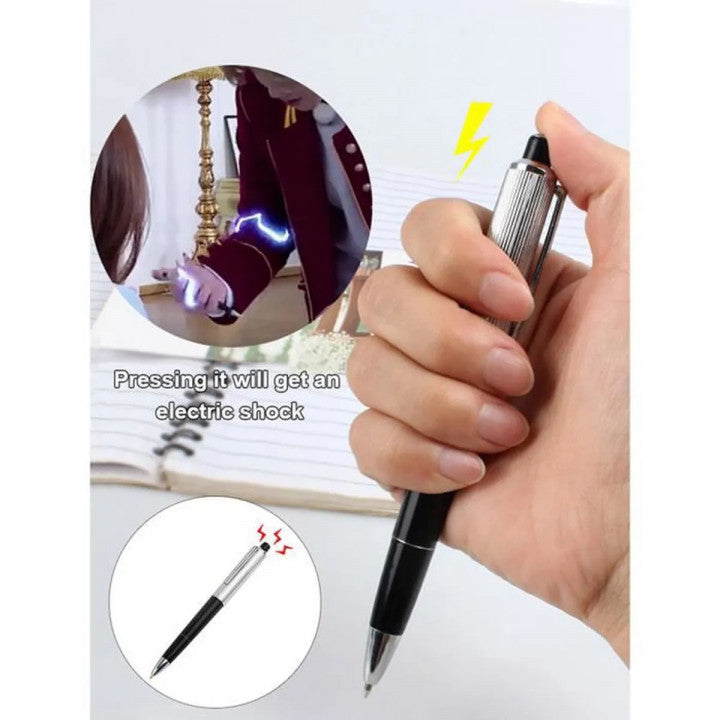 A première vue ce stylo semble normal, il écrit comme tout stylo, mais celui qui appuiera sur le capuchon de ce stylo, se prendra une décharge électrique!