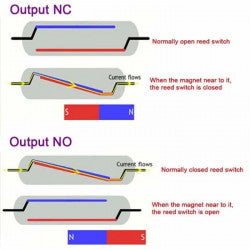 Le contact est un interrupteur à  lame souple (ILS ou contact Reed). Lorsque l'aimant est éloigné de l'ILS, le contact de celui-ci est ouvert. La centrale reçoit comme information une ouverture synonyme de porte ou fenêtre ouverte ; si le système de sécurité est en service, l'alarme se déclenche. Lorsque l'aimant s'approche du contact, les deux lames de l'ILS sont soumises au champ magnétique. Chaque lame se comporte alors comme un aimant. La lame souple se déforme et entre en contact avec la lame rigide. Le contact électrique est établi ; la centrale reçoit comme information une fermeture. Dans ce cas l'alarme ne sera pas déclenchée. Les contacts les plus utilisés sont les NF = fermé au repos et ouvert en alarme. Ces contacts doivent être raccordés en série sur une zone normalement fermée de votre centrale d'alarme. Gros avantage de ces contacts est que l'ouverture d'un seul ou bien la coupure de câble déclenche l'alarme.