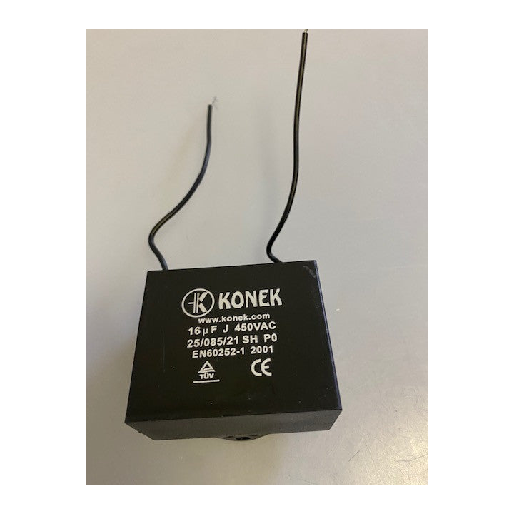 - Conçu avec une tension nominale de 450 V CA et une capacité de 16 μF