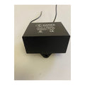 Ce condensateur utilise un film de polyprpylène et un film de sécurité de réticulation (épaissi par du zinc et de l'aluminium) en tant que moyen, encapsulé par une résine époxy ignifugée et un plastique ABS carré.