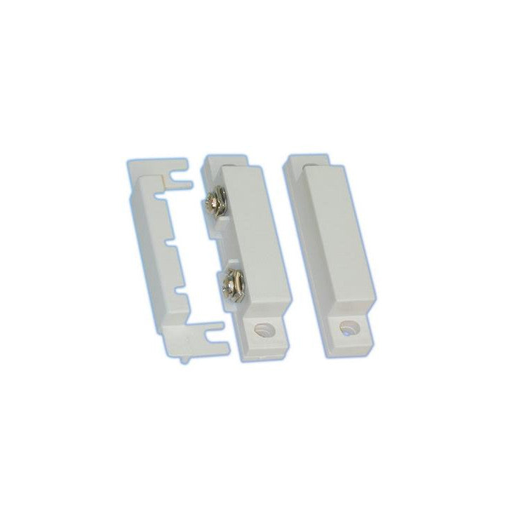 Le contact est un interrupteur à lame souple (ILS ou contact Reed). Lorsque l'aimant est éloigné de l'ILS, le contact de celui-ci est ouvert. La centrale reçoit comme information une ouverture synonyme de porte ou fenêtre ouverte ; si le système de sécurité est en service, l'alarme se déclenche. Lorsque l'aimant s'approche du contact, les deux lames de l'ILS sont soumises au champ magnétique. Chaque lame se comporte alors comme un aimant. La lame souple se déforme et entre en contact avec la lame rigide. Le contact électrique est établi ; la centrale reçoit comme information une fermeture. Dans ce cas l'alarme ne sera pas déclenchée. Les contacts les plus utilisés sont les NF = fermé au repos et ouvert en alarme. Ces contacts doivent être raccordés en série sur une zone normalement fermée de votre centrale d'alarme. Gros avantage de ces contacts est que l'ouverture d'un seul ou bien la coupure de câble déclenche l'alarme.