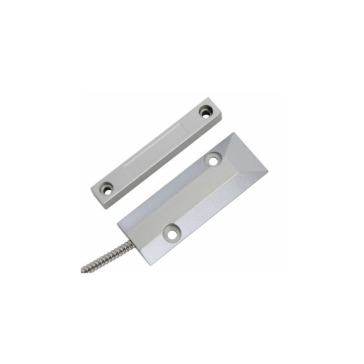 Ce contact magnétique, dont le sabot et le coffre sont en aluminium, convient aux portes de garage en bois, en aluminium ou en PVC.