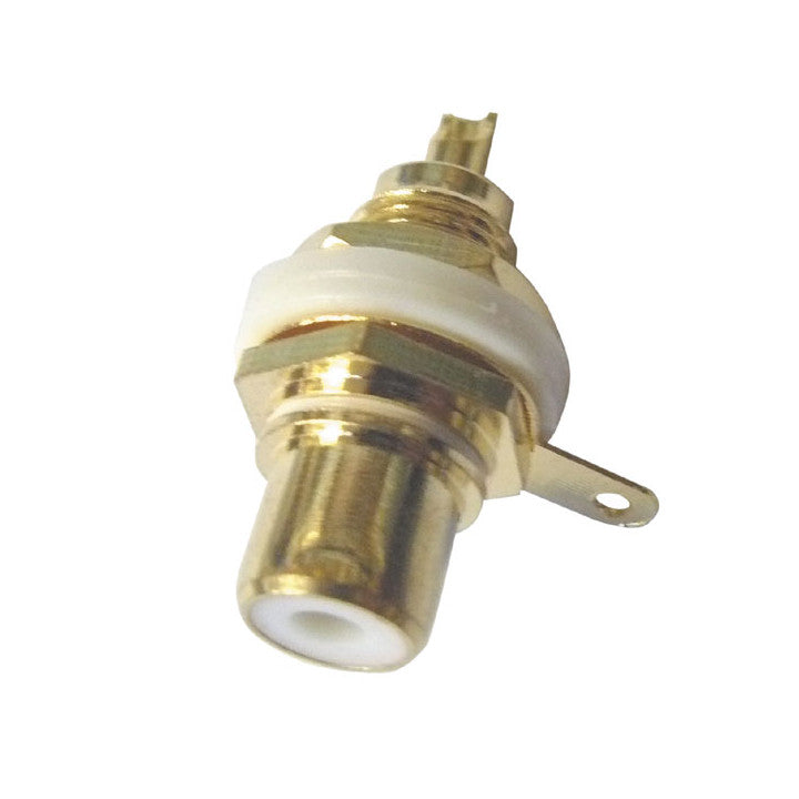 Dimensions: O15x28mm. Poids: 6gr- Embase RCA fem.- Métal dorée- Bague noire ou blanche