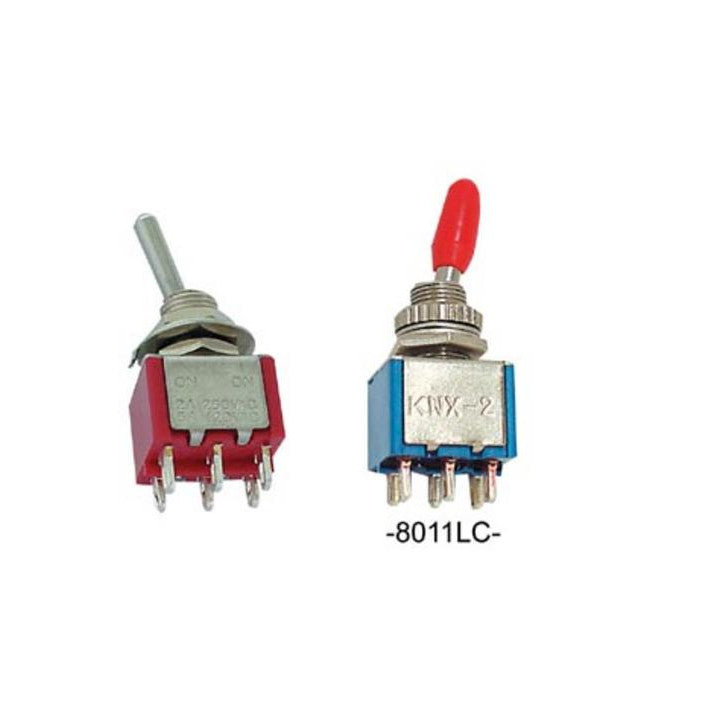 Interrupteur inverseur vertical dpdt on (on) a levier 8011lc rouge bleu